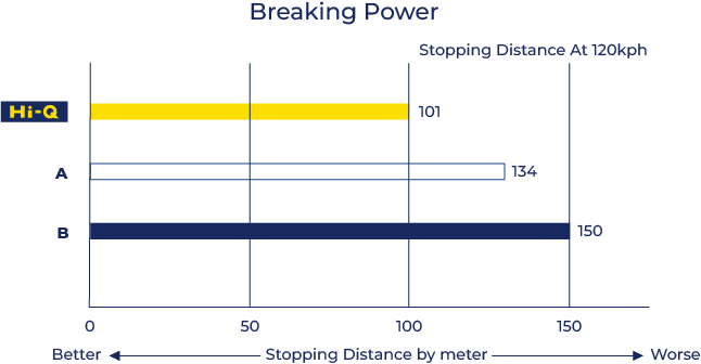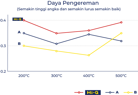 Gesekan pada kampas rem HiQ selalu konsisten, tidak terpengaruh terhadap model kendaraan, cara mengemudi hingga suhu udara tinggi atau rendah sekalipun. Menghasilkan performa yang stabil setiap saat.